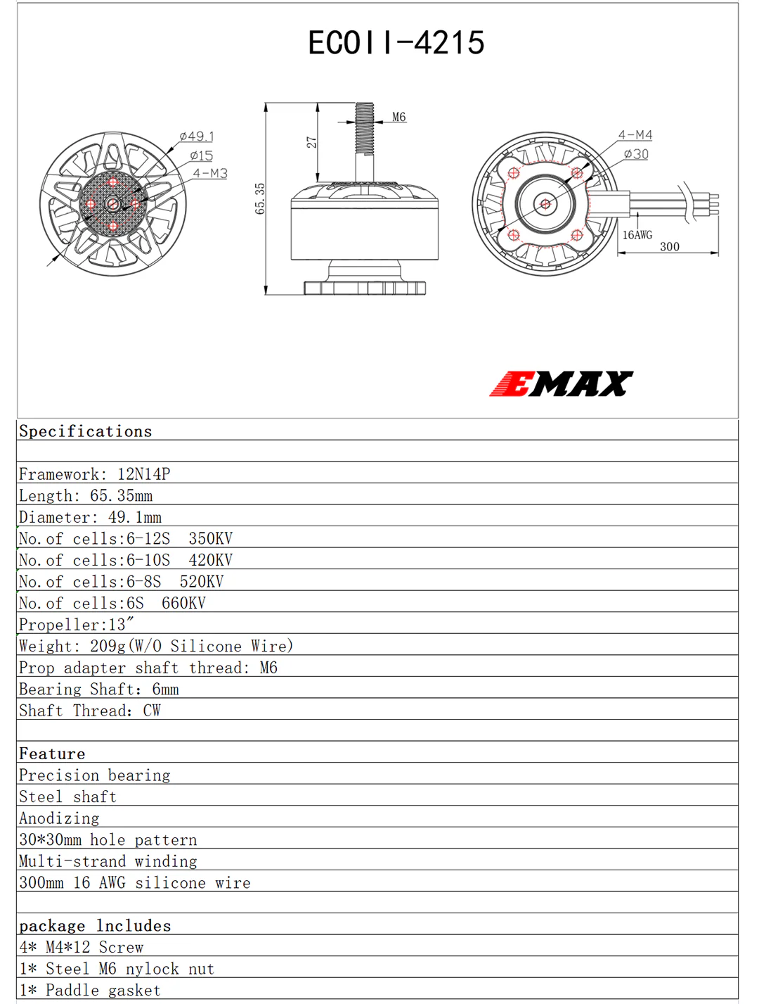 EMAX ECOII 4215 350kv mootor (6-12S)